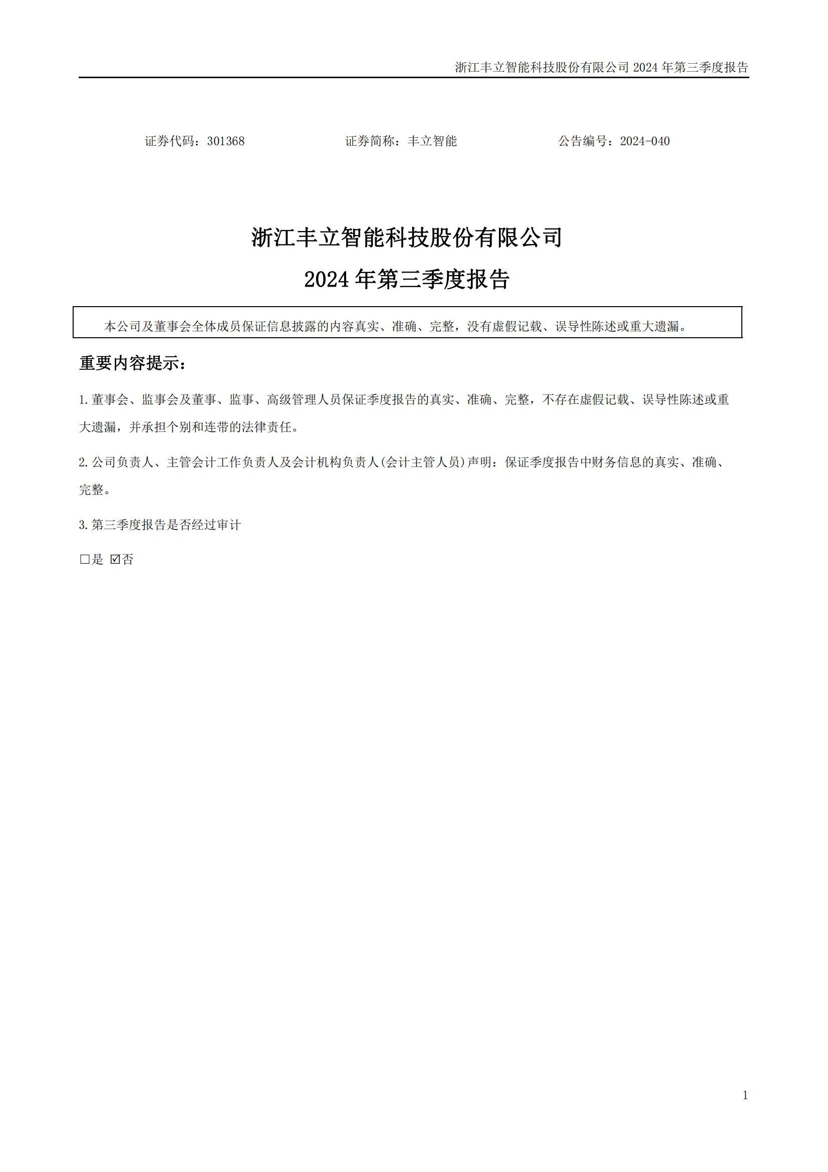 國泰君安證券股份有限公司關(guān)于浙江豐立智能科技股份有限公司2024年半年度持續(xù)督導(dǎo)跟蹤報(bào)告